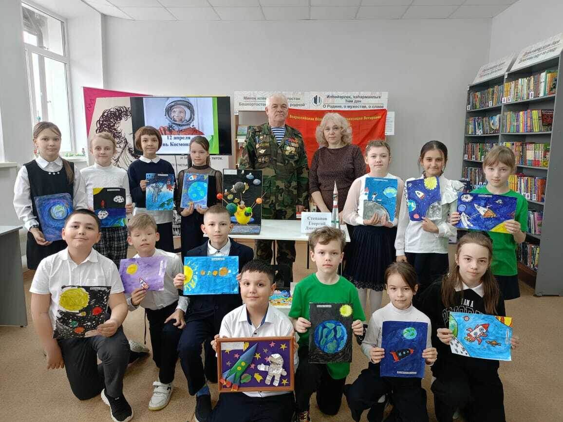 День космонавтики — большой праздник в честь лётчиков, космонавтов, конструкторов, которые создают ракеты, космические корабли и искусственные спутники Земли. В субботний день 12 апреля двери городской модельной библиотеки распахнулись для веселой шумной детворы. Учащиеся школы № 35 пришли на увлекательную встречу с Георгием Дмитриевичем Степановым. «Свет таинственный, далёкий, призывая и маня,к устремлениям высоким в небеса зовёт меня». Этими прекрасными строками начала мероприятие Элина Хасанова.