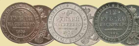 Среди всех николаевских монет особую ценность представляют несколько исключительно редких экземпляров, которые являются настоящими жемчужинами нумизматики. 1. **Константиновский рубль 1825 года** — абсолютный лидер по редкости и стоимости. Эта пробная монета была отчеканена для великого князя Константина Павловича, который должен был взойти на престол после смерти Александра I. Известно о существовании всего около 8-9 подлинных экземпляров. На аукционах цена может превышать $1-2 миллиона. 2. **Платиновые монеты** (особенно 12 рублей 1839-1840 годов) — уникальные в мировой практике монеты из платины, выпускавшиеся в 1828-1845 годах. Самые редкие экземпляры могут стоить $150-200 тысяч. 3. **Пробный рубль 1827 года** с портретом Николая I в необычном ракурсе — его стоимость может достигать $100-150 тысяч. 4. **"Семейный рубль" 1836 года** с изображением императорской семьи на реверсе — редкая памятная монета, цена которой на аукционах начинается от $50 тысяч. 5. **Пробные монеты "рус