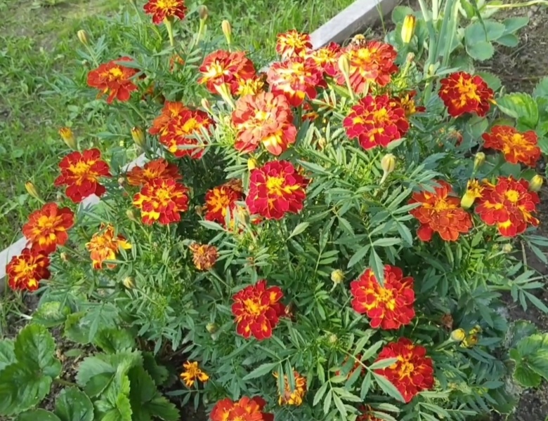Выращивание рассадным способом. Если вы как и я ,дачник выходного дня,живёте далеко от огорода и у вас нет возможности часто бывать на даче,то предлагаю вырастить рассаду бархотцев в городских условиях. Многие скажут ,что их проще всего посеять в открытый грунт.Да конечно ,но нужно жить рядом,что бы при необходимости полить ,притенить всходы от яркого солнца или закрыть от возвратных заморозков.Бархотцы смёрзнут при небольшом минусе.Поэтому я сею их в середине апреля на рассаду. Раскладываем семена на слегка увлажнённый грунт и присыпаем землёй на 1-1,5 см. Хорошие семена быстро всходят,в течении 5-7 дней. Когда появится пара настоящих листьев,проводим пикировку в отдельные стаканы. Я рассаживаю в стаканы объёмом не менее 0,2 мл по одной штуке в стакан. Поливать по мере просыхания грунта. Высаживать в грунт после того ,как минует угроза возвратных заморозков.Год на год не приходится,иногда это конец мая ,а иногда и начало июня. Бархотцы хорошо переносят пересадку,даже если они уже с