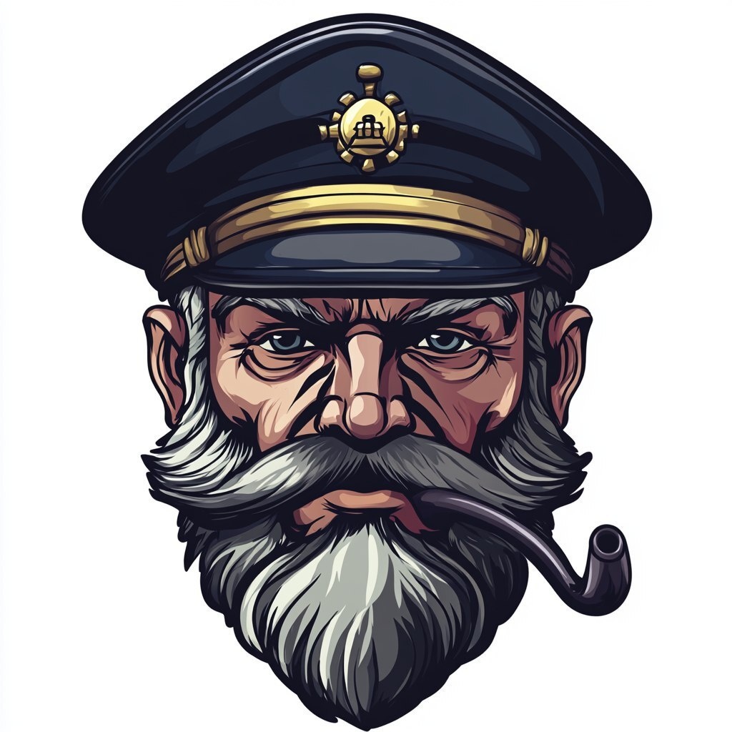 Создано на основе запроса: the head of a ship captain with a pipe, no background