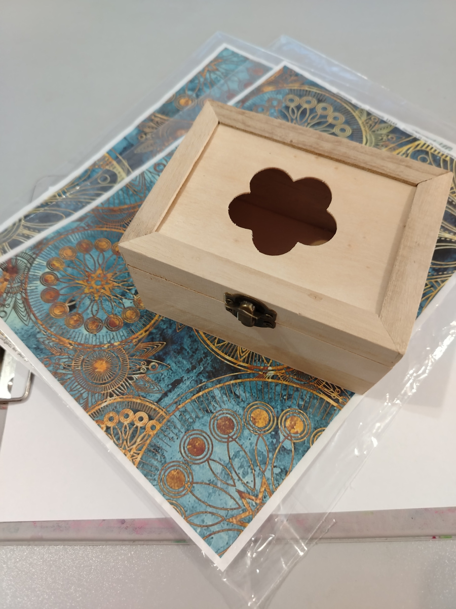 Давно хотела задекупировать... задекупажировать... подвергнуть декупажу? деревянную шкатулку, которая случайно попалась мне в руки. Для этого я сперва долго искала какие-нибудь красивые салфетки, но цветочно-конфетные темы мне как-то не понравились. Поэтому я купила аж целую специальную "декупажную карту". На мой взгляд, штука неоправданно дорогая, но мне очень понравился рисунок: Обычно такие вещи советуют грунтовать в белый цвет, чтобы декупаж смотрелся ярче, но я не я, если не выберу свой собственный вариант. Поэтому у меня - темно-синий акрил. Вообще, акрил от "Гаммы" мне не нравится своей неимоверной прозрачностью, но здесь она сыграла на руку - получился такой эффект морилки. Я покрыла шкатулку в два слоя. Всю фурнитуру, конечно, надо было заранее скрутить, но хорошая мысль - она известно, когда приходит. Тут я уже исправилась, потому что клеить декупажную карту поверх фурнитуры как-то сложновато. Иду по схеме: "клей пва с водой 1/1", сухая карта (на ней было написано, что можно)
