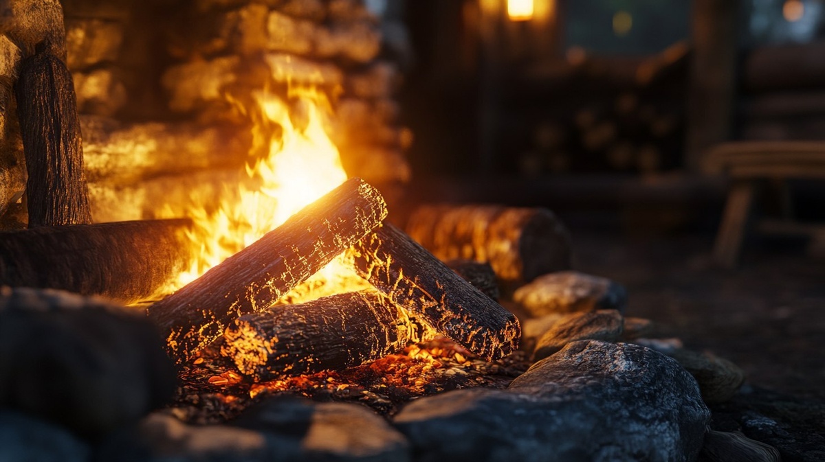 Создано на основе запроса: Cozy Wood Fire, 8k resolution, taken with a camera
