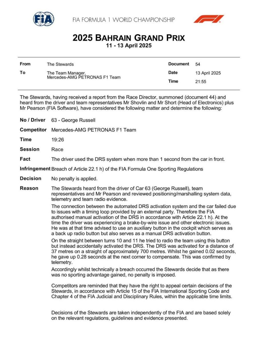 Британца на Мерседесе решили не штрафовать за DRS, итоги остаются прежними.