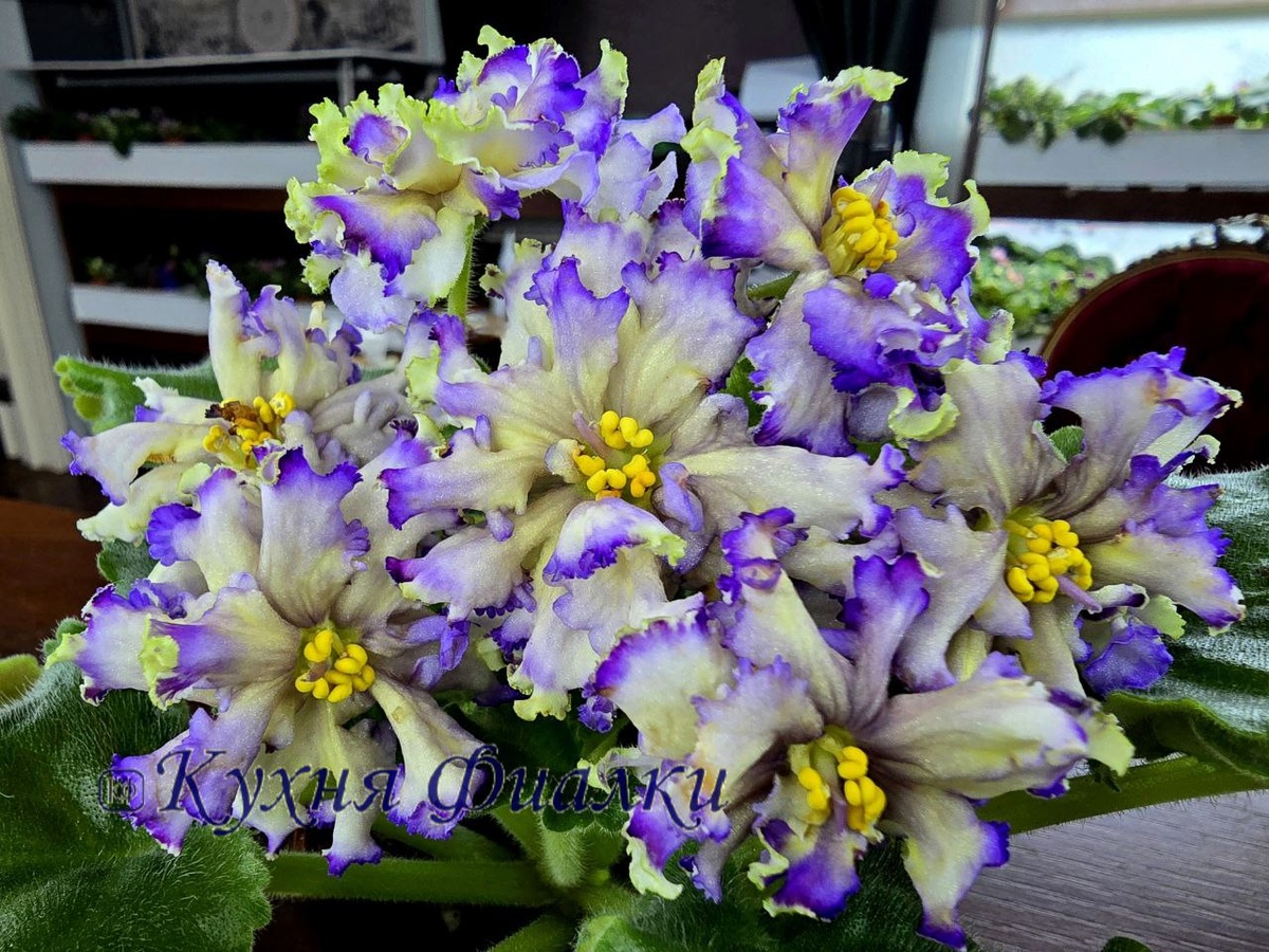 🐇🍒🍒ЕК-Мисс Уникальность - для тех, кто "уже все видел" будет подарком. Не знаю с кем его можно сравнить ни по окрасу ни по форме ни по структуре. Яркие, жёсткие цветы с многорядовыми лепестками, закрученными как-то по особенному. Сине-фиолетовые края лепестков заканчиваются восковым зеленым прерывистым рюшем. Центр ярко-желтый.