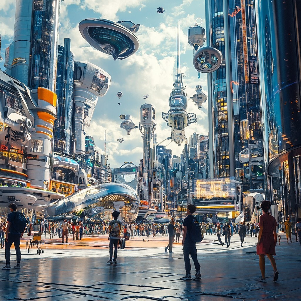 Создано на основе запроса: hyper-realistic, pixar style, A vibrant and dynamic scene illustrating the transformative power of Artificial Intelligence in modern life. The image showcases a futuristic cityscape where AI is seamlessly integrated into daily activities. In the foreground, young adults and students engage with interactive AI tools. --- Автоперевод: Гипер-реалистичный, стиль Pixar, яркая и динамичная сцена, иллюстрирующая преобразующую силу искусственного интеллекта в современной жизни. Хорошо получилось? 🤔 https://dzen.ru/id/65c0c65c86e4f837c27b24d7 #ИИ #AI #нейросеть #midjourney #art