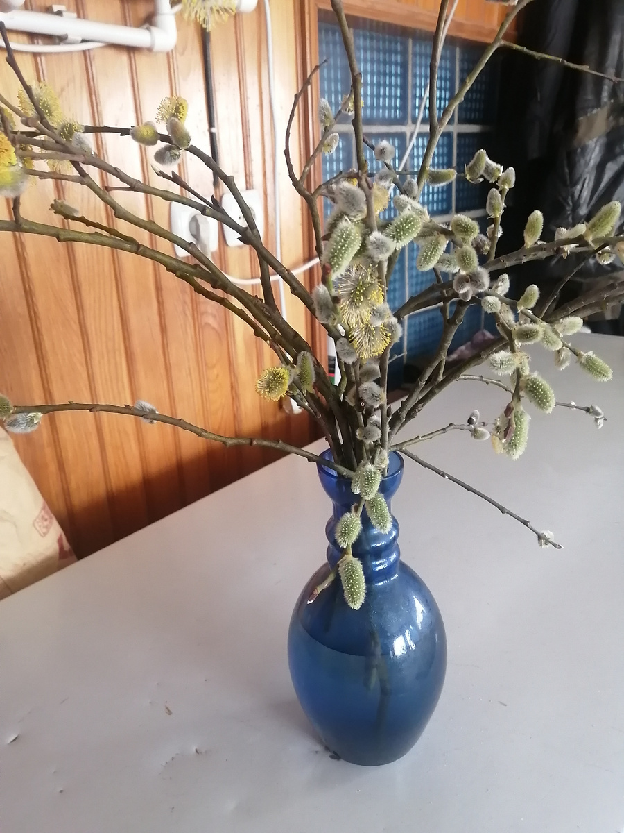 Приветствую, друзья! Спасибо за ваши поздравления и от меня примите поздравления с Вербным воскресеньем 🙏. Мира нам всем🙏. С утра задумала, что ничего делать не буду, как ни как праздник на дворе. Один день не зарастем от грязи, но... Зайдя в спальню мужа поняла, что уборка неизбежна и пошла за пылесосом.Ися так гребет в своём лотке, что пол комнаты в гранулах наполнителя. Там пропылесосила, а дальше и у другого лотка, и на веранде, и на кухне. Так, немного пробежалась. Потом позавтракала и так меня разморило. Я ж не планировала сегодня работать. И пялюсь в ТВ. А, забыла совсем, проснулась в седьмом часу, а на улице белым бело. К девяти часам уже снег подтаял. Но все же, весна нынче прямо удивляет. Игорь взялся трубы для будущих столбов очищать, а потом сваривать. Ну хоть как то сэкономить на материале. На улице очень холодно. Все забегает кофе заварить да погреться. Выпустила птиц полетать, а то сил нет смотреть, как они крылышки свои разминают в клетках. Лекс спит, прямо