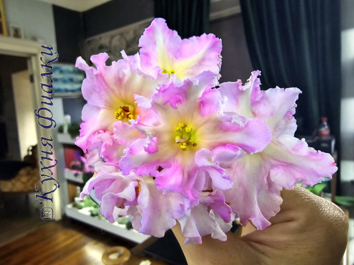 🍒🍒🍒FG-Золотое Руно. Химера с жёлтыми лучами. Цветок не ровный, с рваными лепестками. Розовый не однородной, есть включения более насыщенного.
