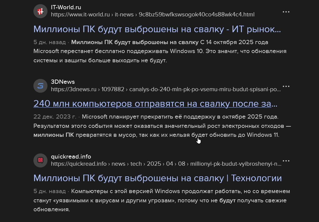 На какую свалку понесёте свой ПК с Windows 10 в октябре 2025 года? А-а, ещё "Семёрку" не выбросили...