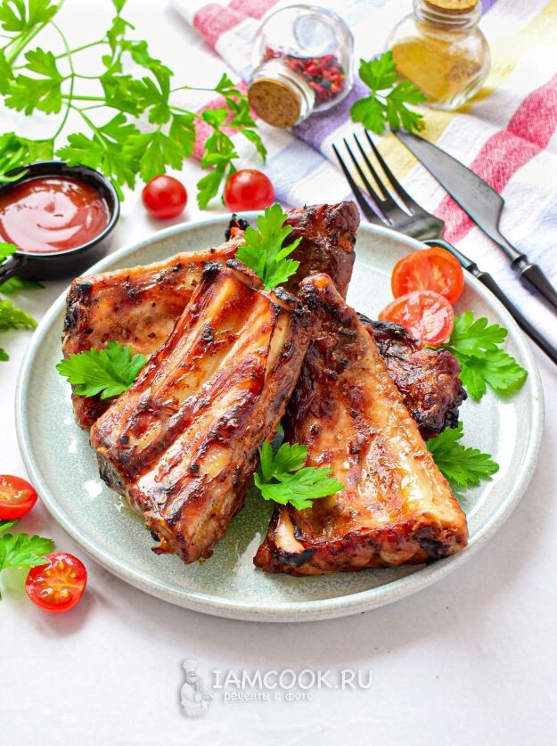 ✔ Надрежьте плёнку между костями (чтобы ребрышки не скручивались при жарке).