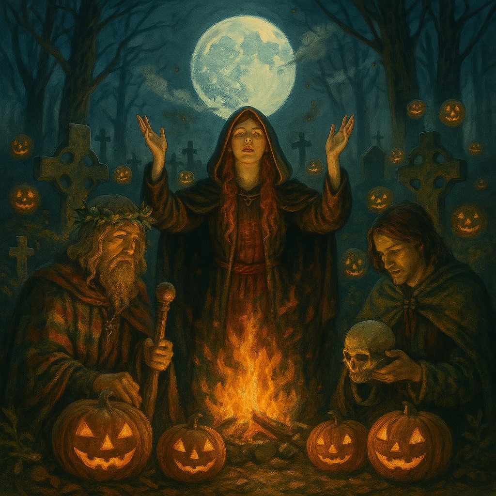Друиды, жрецы кельтов, играли центральную роль в обрядах Самайна. Они проводили церемонии в священных рощах (неметонах). Там зажигали огромные костры, читали заклинания, проводили гадания на будущий год и призывали богов, чтобы защитить племя в наступающей зиме.