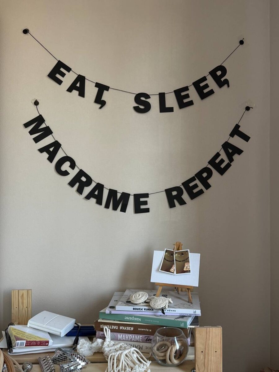 Напоминаю вам про #макрамерч от меня: гирлянды для создания атмосферы в вашем творческом пространстве! 🎗️ «МАКРАМЕ ONE LOVE» 🎗️ «ЕШЬ, МОЛИСЬ, ПЛЕТИ» 🎗️ «EAT, SLEEP, MACRAME REPEAT»