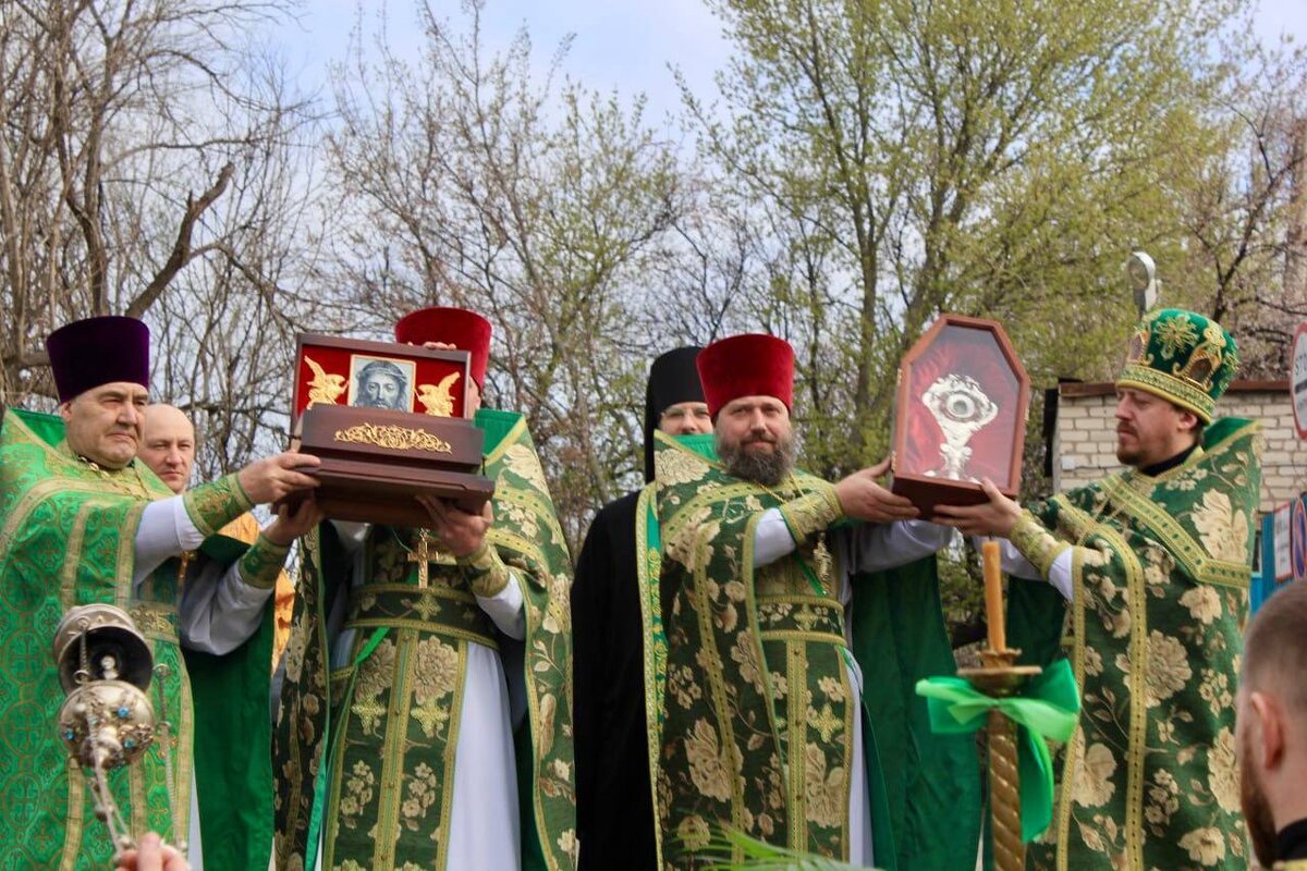 13 апреля, в Неделю 6-ю, ваий (цветоносная, Вербное воскресенье), праздник Входа Господня в Иерусалим, игумен Вознесенского мужского монастыря архимандрит Иоанн (Сухина) возглавил Божественную литургию святителя Иоанна Златоуста на луганском Всехсвятском подворье. По окончании богослужения было совершено славление празднику. Ранее утром на подворье были торжественно встречены Великие Страстные святыни: Часть Древа Животворящего Креста Господня и Шип от Тернового Венца Христа Спасителя. По 19 апреля на подворье у святынь будут совершаться молебны с акафистом в 12:00 и 16:00.