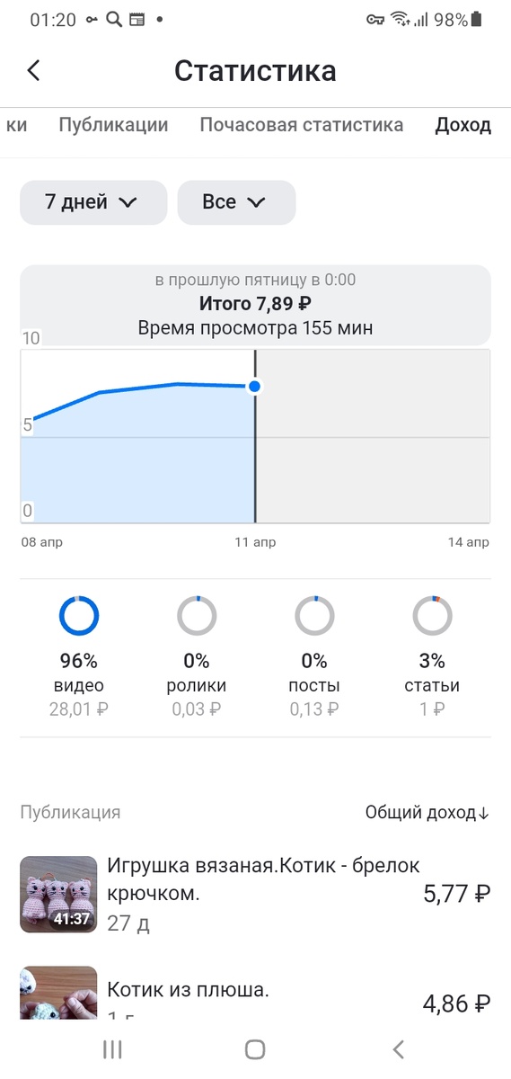 Друзья всем большой привет! Решила написать пару строк.Хотя писака из меня ещё тот. Даже не употребляю слово ,,писатель,, На Дзене перестройка. Видео с сегодняшнего дня оплачивпться не будут ,доход будет только со статей и постов. Но мне нисколько не жаль ,мне в принципе терять нечего.Мой заработок на Дзене даже не подходит плд слоао смешной. Вот девчата скриншот моего дохода. Как вы видите моя страница и мои доходы.Статистика запаздывает на 2-3 дня. В прошлую пятницу доход аж чуть не 8 рублей. И за видео , за всё время сколько оно на канале тоже 5 рублей ,4 рубля. Веду канал просто ради своего интереса. Мне нравится вязать игрушки , хотя продаю их редко, в нашей деревне где живут почти все пенсионеры , спроса нет. Так что Дзен своими обновлениями меня не напугал и не огорчил. Наверное кто заглядывает на канал уже увидели сообщение что я развиваю канал на Рутубе. Здесь же останутся текстовые форматы. И скорей всего публикации будет выходить не часто. Писать я не умею да и не люблю. Ну