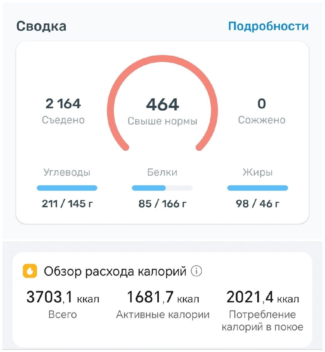 ➕ Съедено: 2164 ккал