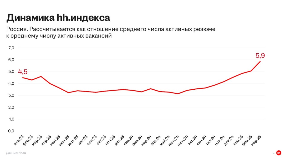 🇷🇺 Рынок труда в РФ приходит в норму. Количество активных вакансий в марте сократилось во всех отраслях экономики кроме туризма и медицины, — данные HH Снижение перегрева на рынке труда может стать причиной пересмотра денежно-кредитной политики ЦБ РФ. @if_news