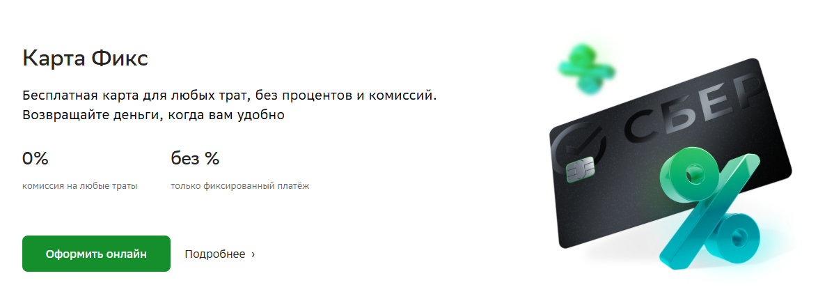 Представляю вам карту, которая внезапно кажется хорошим предложением от Сбербанка. До недавнего времени у Сбера была только одна кредитная карта с длинным грейс-периодом в 120 дней. И по какой-то неведомой причине банк решил дополнить набор карт такой, которая очень удобна для обналичивания денежных средств. Карта называется «Кредитная СберКарта Фикс» (Сбер предпочитает странный нейминг). Бесплатная (безусловно) кредитная карта по тарифу «Фикс» может иметь лимит от 10 до 100 тыс. руб и имеет интересное преимущество: можно снимать/переводить до 100 тыс. руб/мес. ✓Возвращаете долг до конца месяца — комиссий нет. ✓Не уложились — фикс. плата 40 ₽ за каждую 1000 ₽ долга на конец месяца. Т.е., при максимально возможном лимите 100 тыс. руб плата может достигнуть 4000 ₽. Плюс по карте можно выбирать категории кешбэка, она участвует в программе СберСпасибо. - В Сбере можно иметь только 1 кредитную карту, т.е. если у вас есть «Кредитная Сберкарта», то оформить Фикс нельзя. - Карту можно оформить