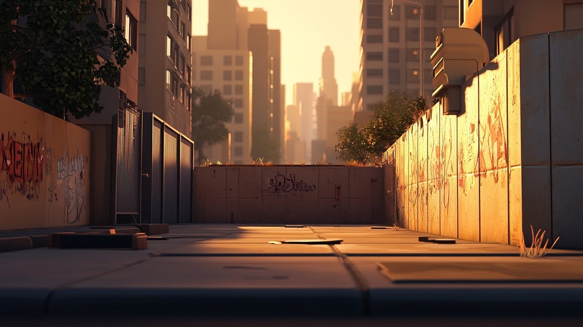 Создано на основе запроса: create a front view of a low wall in the city, in the style of Pixar, in the style of cartoon, cinematic, Octane