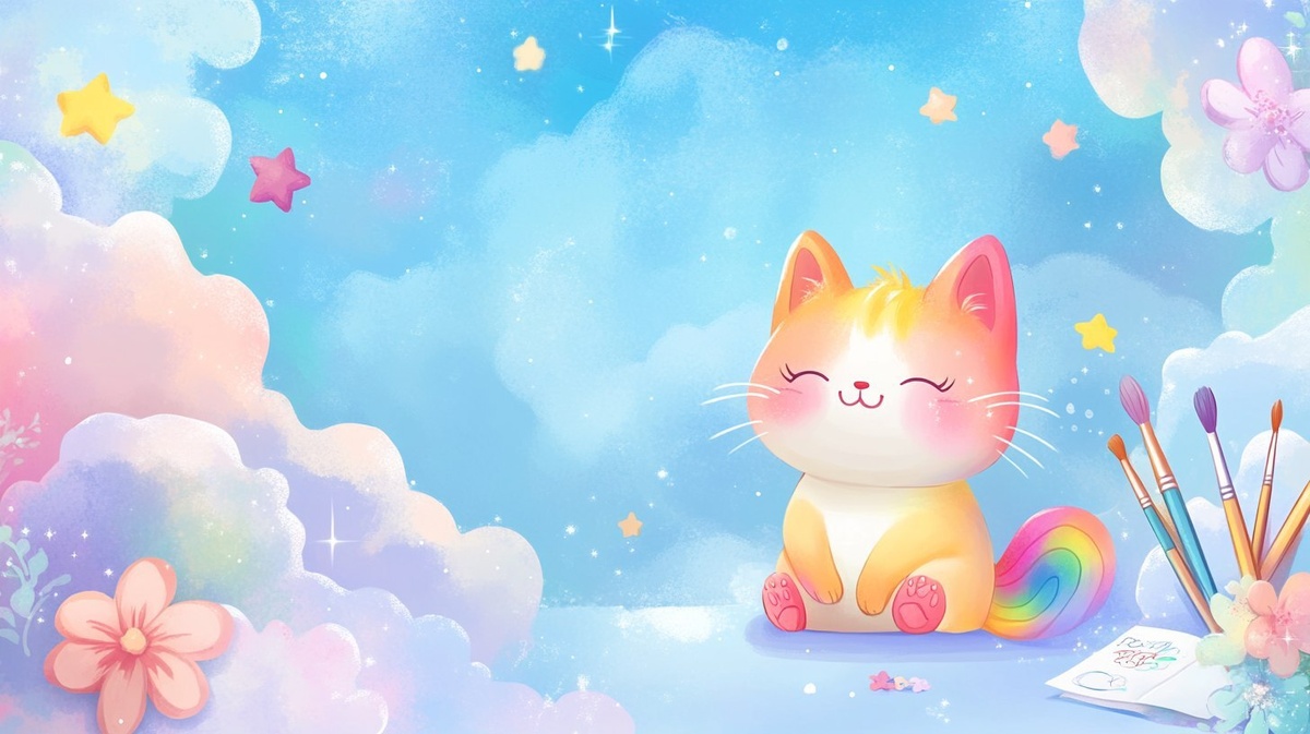 Создано на основе запроса: a cute cartoon rainbow-colored cat sitting happily, with soft fur in pastel rainbow shades, surrounded by fluffy clouds, stars, and flowers, dreamy and magical atmosphere, paintbrushes, scissors, and paper around, empty space in the center for text, child-friendly --- Автоперевод: Симпатичный мультяшный кот радужного цвета, сидящий счастливо, с мягким мехом в пастельных радужных оттенках, окруженной пушистыми облаками, звездами и цветами, мечтательной и волшебной атмосферой, кистями, ножницами и бумагой вокруг, пустое пространство в центре для текста, дружелюбная детская Как тебе такая картинка? 🤔 https://dzen.ru/id/65c0c65c86e4f837c27b24d7 #ИИ #AI #нейросеть #midjourney #art