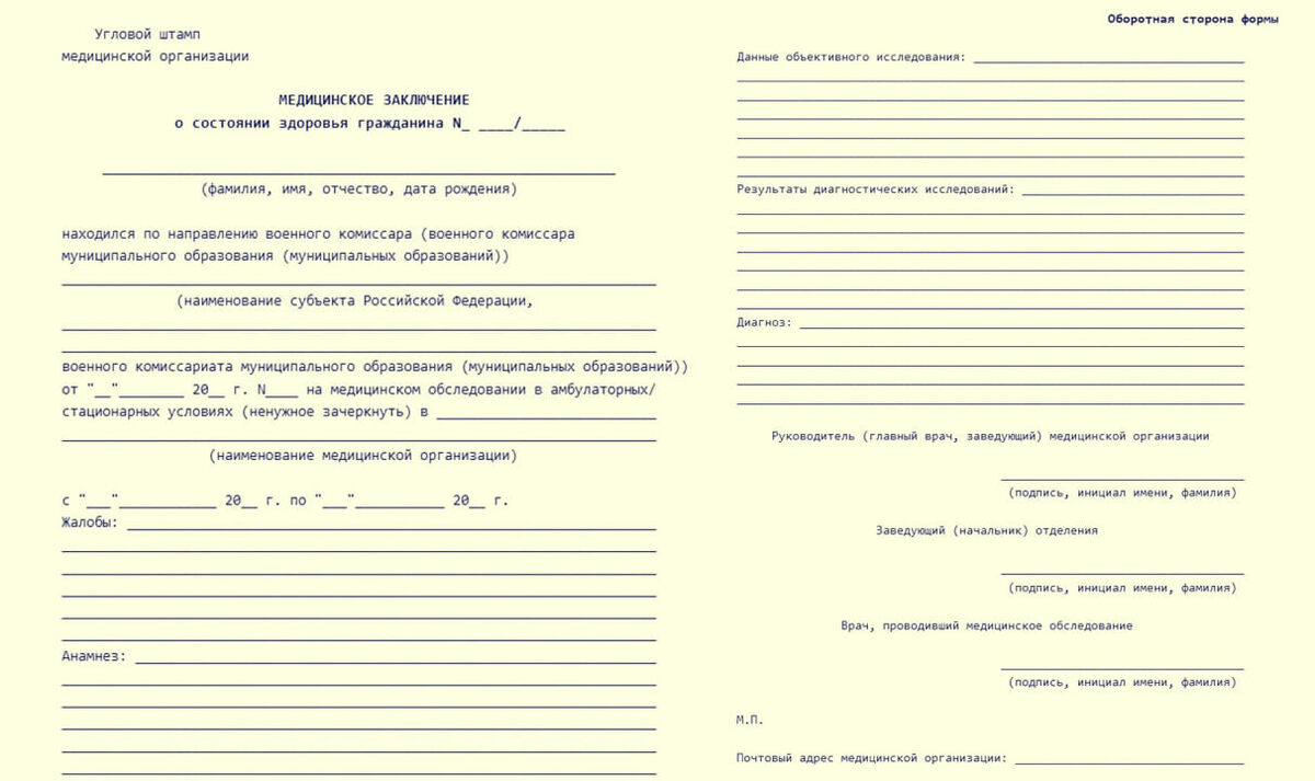 Вы можете быть полностью уверены, что ваш диагноз освобождает вас от призыва, но военкомат обязательно направит вас на дополнительное обследование. В данной статье я объясню, чем обследование по направлению военкомата может отличаться от обычного, а также к чему нужно обязательно быть готовым. В каком случае военкомат направляет на дополнительное медицинское обследование? До начала прохождения медицинской комиссии в военном комиссариате, призывника направляют в поликлинику для сдачи обязательных анализов, ЭКГ и Флюорографии. Явившись в военкомат с результатами анализов, призывник приступает к прохождению врачебной (медицинской) комиссии, в которую входят: терапевт, хирург, невролог, психиатр, стоматолог, ЛОР и окулист. У каждого врача призывник указывает свои жалобы на состояние здоровья, а также предъявляет медицинские документы, которые характеризуют его состояние здоровья. Само собой жалобы на здоровье и медицинские документы стоит предъявлять тому врачу-специалисту, к направленност