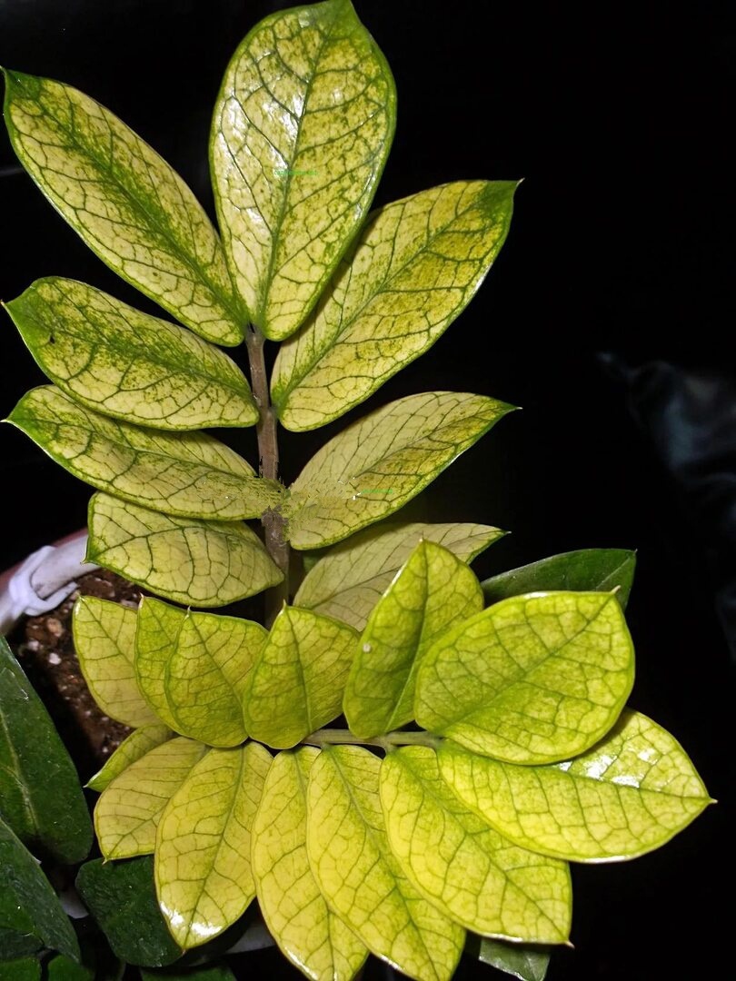 Замиокулькас Акебоно(название, происходит от японского «曙» — «рассвет») — вариегатная или гибридная форма Zamioculcas zamiifolia, которая отличается необычной окраской листьев . Светлые участки содержат меньше хлорофилла, поэтому рост ещё медленнее, чем у обычного ZZ. Потеря вариегатности→ Недостаток света. Переместите растение ближе к окну. Коричневые края листьев→ Солнечные ожоги или сухой воздух. Притеняйте, опрыскивайте воздух (не листья!). Гниль корней → Перелив. Извлеките растение, удалите поврежденные клубни, пересадите в сухой грунт. Настоящие вариегатные ZZ-растения встречаются редко и стоят дорого. 🌱✨