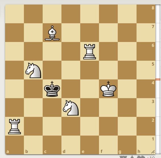 Автор задачи Л. Искра, 1970 год. Белые начинают и ставят мат в 2 хода. Более интересная задача тут >>>> Анекдот от Нежметдинова тут >>>> Первый верный ход смотрите в галерее.