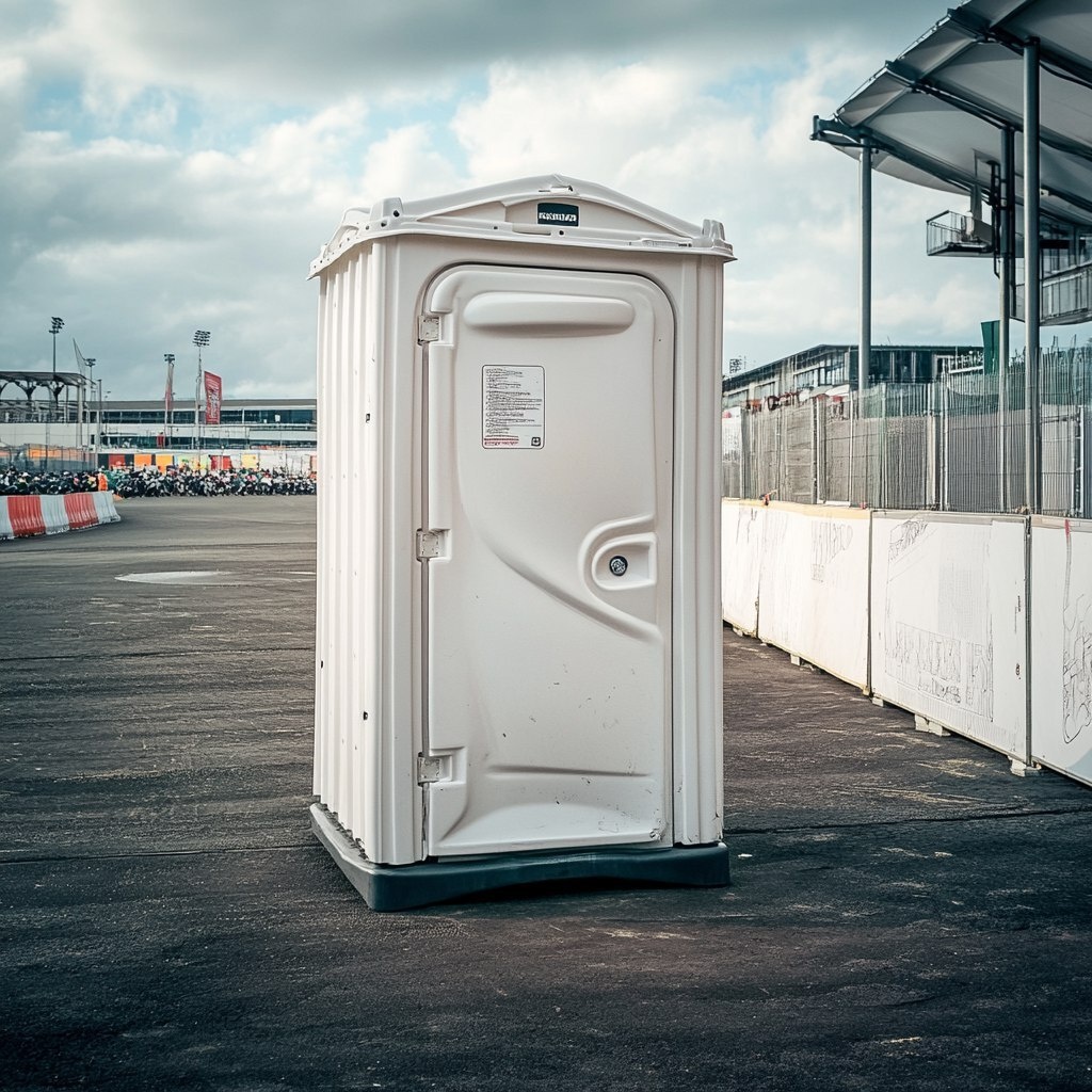 Создано на основе запроса: white portable toilet in outdoor, motorcycle circuit paddock area