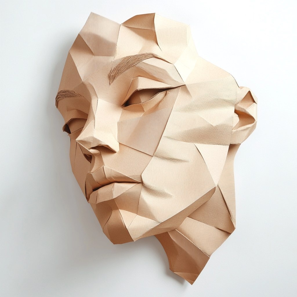 Создано на основе запроса: beautiful female face made out of origami, skin toned paper, white background
