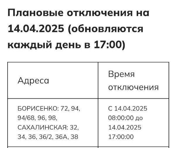 💡Плановые отключения электроэнергии сегодня.