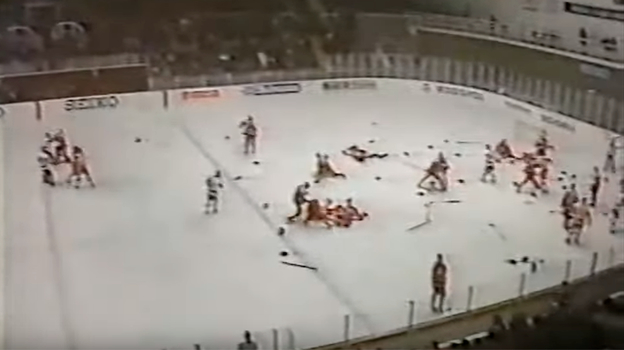 — Да. Те в ответ! И понеслось — команда на команду. Наши все вылетели с лавки. Болельщики тоже выскочили на лед, стали канадцев метелить.