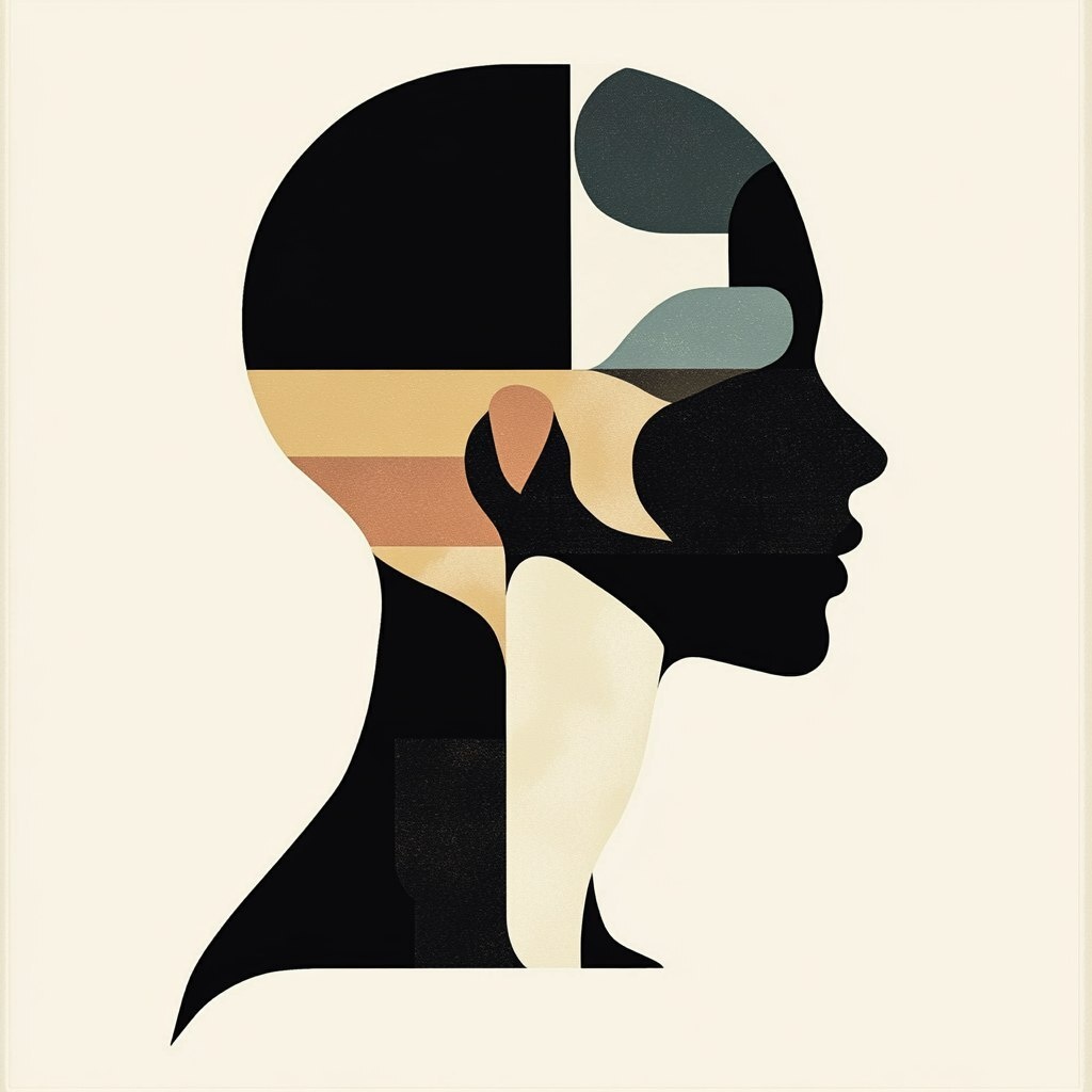 Создано на основе запроса: a geometric image of the sillhouette of a person's profile, no hair, simple shapes