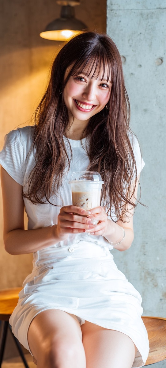 Создано на основе запроса: Japanese 23yo woman, front shot, Nogizaka46, beautiful long wavy brown hair combed through, rectus abdominis, oblique abdominal muscles, transverse abdominal muscles, smiling, morning cafe, sitting on a chair, holding iced coffee with both hands, gal makeup, professional eye makeup, eyeshadow, eyeliner, eyelash perm, eyelash extensions, eyelash perm, makeup by professional makeup artist, perfect eyes, knee, quadriceps, rectus femoris, adductor femoris, high-end white shirt, pencil mini skirt, knee, quadriceps, triceps surae, shot with a Canon EOS R5, highly , --- Автоперевод: Японская 23 -летняя женщина, передний снимок, nogizaka46, красивые длинные волнистые коричневые волосы, прочесание, прямые животы, косое мышцы живота, мышцы поперечного живота, улыбающееся, утреннее кафе, сидя на стуле, удерживающее кофе с обами руками, макияж для глаз, набоевые, идеальные ура Отлично получилось? 🤔 https://dzen.ru/id/65c0c65c86e4f837c27b24d7 #ИИ #AI #нейросеть #midjo