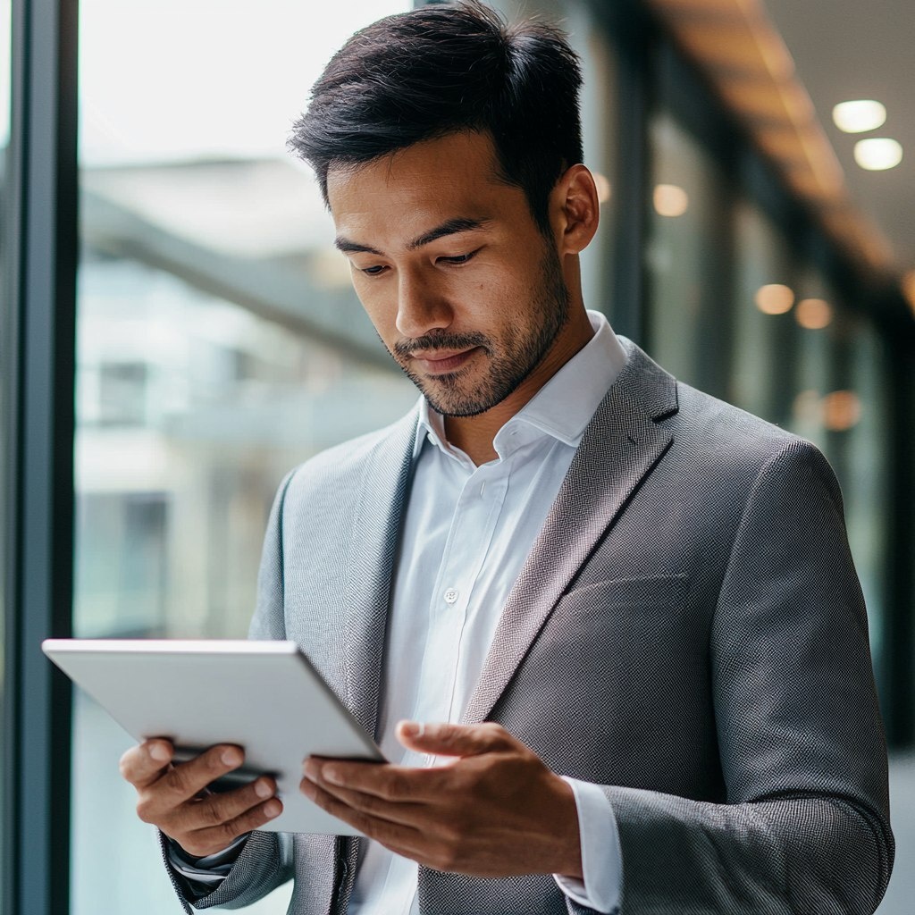 Создано на основе запроса: image of a businessman holding and looking on a tablet