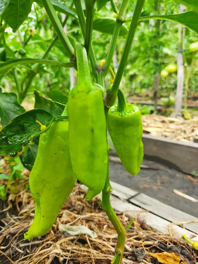 Перец - даже с учетом, что я выращиваю сорта, которые растут вверх до 80 см, и им нужна подвязка чтобы не вывалились из грунта под тяжестью урожая, расстояние примерно 30 см. В ножки подсаживаю базилик, салатики и бархатцы