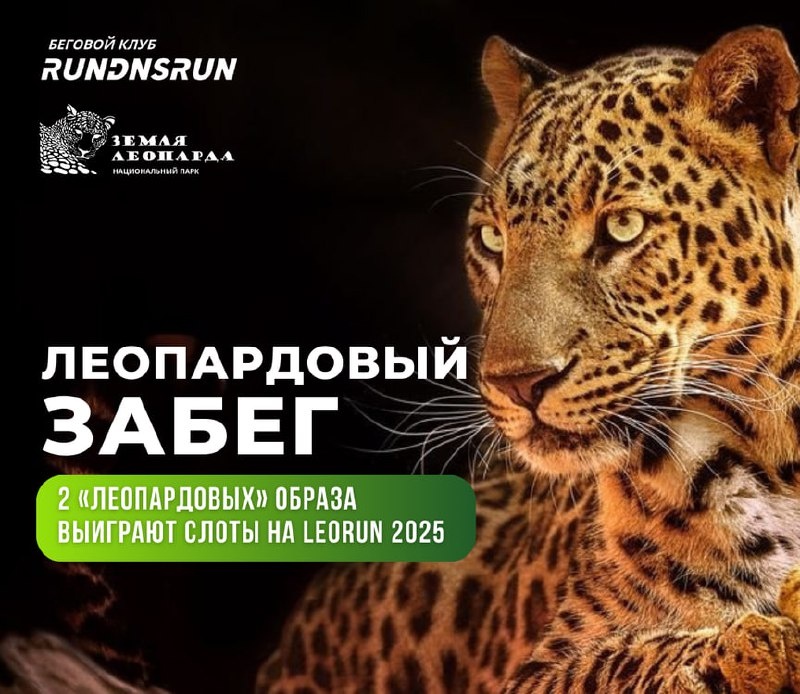 Открыта регистрация на бесплатный «Леопардовый забег», который состоится на фестивале «День леопарда» 3 мая во Владивостоке. Присоединяйся к самой пятнистой пробежке весны, зарегистрируйся прямо сейчас: https://rundnsrun.ru/ru/events/251! 📍Дистанция — 1,5 км, набережная Спортивной гавани 📅 Время — 3 мая, регистрация с 11:30 возле фонтана, старт в 12:15 🏁 🎽Обязательное условие — леопардовый принт в одежде или аксессуарах! 💥Два лучших образа леопарда получат слот на LeoRun 2025 и сувениры. А еще будет розыгрыш подарков 🎁 Организаторы забега — «Земля леопарда» и беговой клуб RunDnsRun. 🌿 После пробежки — погрузись в фестиваль! Концерт, мастер-классы, лекции о леопардах и многое другое в рамках «Дня леопарда» — крупнейшего в России праздника в честь этой редкой кошки, одного из символов Приморья. Не пропусти, беги в пятнистых красках — сохрани легенду Дальнего Востока!! 🐾 Подробнее — https://leopard-land.ru/about/news/1510 Генеральный партнер фестиваля — банк ВТБ. 🐾 Здесь «