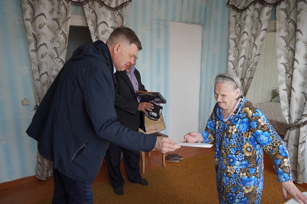 12 апреля свой 95-летний юбилей отметила жительница села Дзержинского Антонина Ивановна Головач. С юбилейной датой её поздравили и преподнесли подарки глава Дзержинского района Виктор Николаевич Дергунов и председатель Совета ветеранов района Уткир Абдузакирович Досмухамедов. Фото Валерия Филимоничева