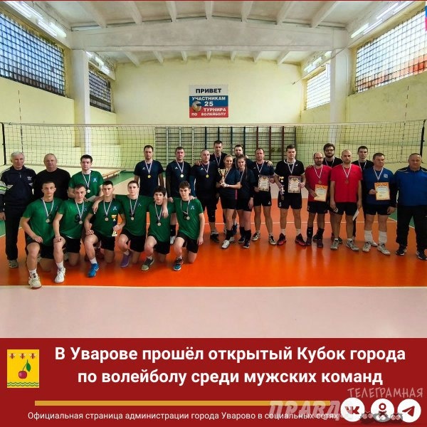 Центральное Черноземье Администрация Уварово: 🏆12 апреля в спортзалах ДЮСШ прошёл открытый Кубок города Уварово по волейболу среди мужских команд. 🤾В соревнованиях приняло участие 6 команд: "Атлант" г. Уварово, ДЮСШ г. Уварово, "Уварово" г. Уварово, а также команды из Мучкапского, Ржаксинского и Инжавинского округов. По итогам соревнований: 🏆 обладателями открытого Кубка города стала команда "Уварово" 🥈2 место заняла команда "Инжавино" 🥉3 место - "Атлант" Соревнования способствуют популяризации спорта, что является одной из целей государственной программы "Развитие физической культуры и спорта". #Уварово #РазвитиеФизическойКультурыИСпорта #Уварово #РазвитиеФизическойКультурыИСпорта Сайт администрации | Телевидение @ГородУварово @PROновостиТамбовщины Телеграмная Правда @PROновостиЧерноземья Телеграмная Правда