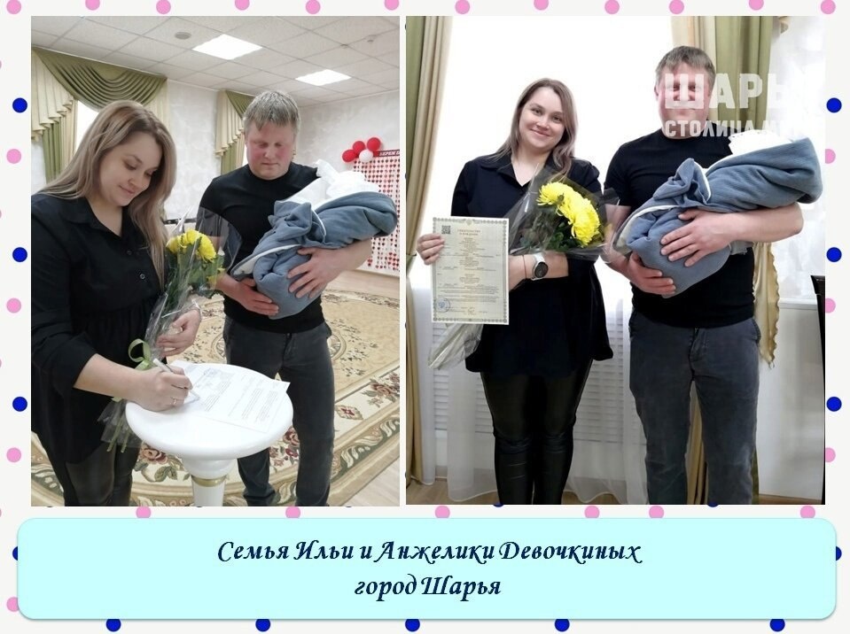 Ещё один сын появился в семье Девочкиных. Семья из Шарьи разрастается. В начале апреля 2025 года у Ильи и Анжелики родился ещё один сын, назвали его родители Евгением. Дома маму и брата ждали девять ребятишек: 6 мальчиков и три девчонки. Илья, Рома, Вика, двойняшки Лера и Саша, Миша, Геля, Дима и Костя с удовольствием встретили нового члена семьи. Молодая и дружная семья известна в городе. Весной 2024 года Анжелика награждена медалью «Материнская слава» II степени. Анжелику и Илью отличают не только общая любовь к детям, но и всестороннее воспитание своих ребятишек. Мальчишки растут настоящими мужчинами, а дочери в будущем станут завидными невестами. Пока что дети посещают школу и детсад, а также различные спортивные секции и творческие кружки. От всего сердца поздравляю Анжелику и Илью с рождением малыша. Здоровья всей вашей большой семье. Шарья – столица мира Крупнейшее городское СМИ Источник
