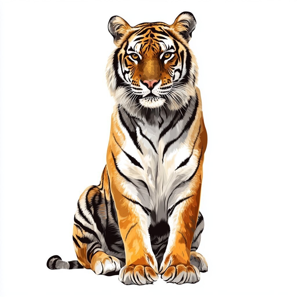 Создано на основе запроса: an illustration of a single isolated tiger sitting on front haunches facing the camera
