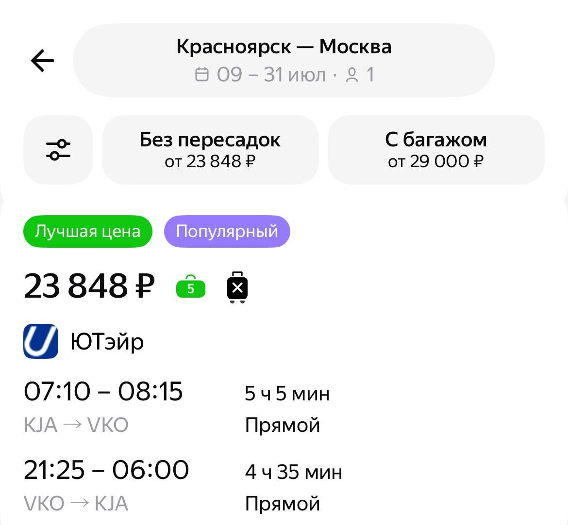 Рубрика: #билетывлето — собрали для вас самые дешёвые билеты по стране. Как вам ценник? Плакать в комментах 😂 📍Москва — от 23 900 https://travel.yandex.ru/--/-SXe5oSk6cb4Sg 📍Санкт-Петербург — от 32 900 https://travel.yandex.ru/--/ZuhyyZ596cb4Lw 📍Сочи — от 32 000 https://travel.yandex.ru/--/d5APlFYy6cb4G5 📍Минеральные Воды — от 33 000 https://travel.yandex.ru/--/bV4NMoh26cb48t 📍Иркутск — от 10 000 https://travel.yandex.ru/--/LAFoLJIZ6cb43B 📍Калининград — от 40 700 https://travel.yandex.ru/--/gonBfjR86cb3tW 📍Новосибирск — от 9 900 https://travel.yandex.ru/--/yna8suKF6cb3mb 📍Казань — от 24 000 https://travel.yandex.ru/--/q27usLyo6cb3SK 📍Владивосток — от 23 000 https://travel.yandex.ru/--/8C8EJ89z6cb3JJ 📍Южно-Сахалинск — от 19 000 с багажом https://travel.yandex.ru/--/qvkucOzn6cb3Cc @KJA