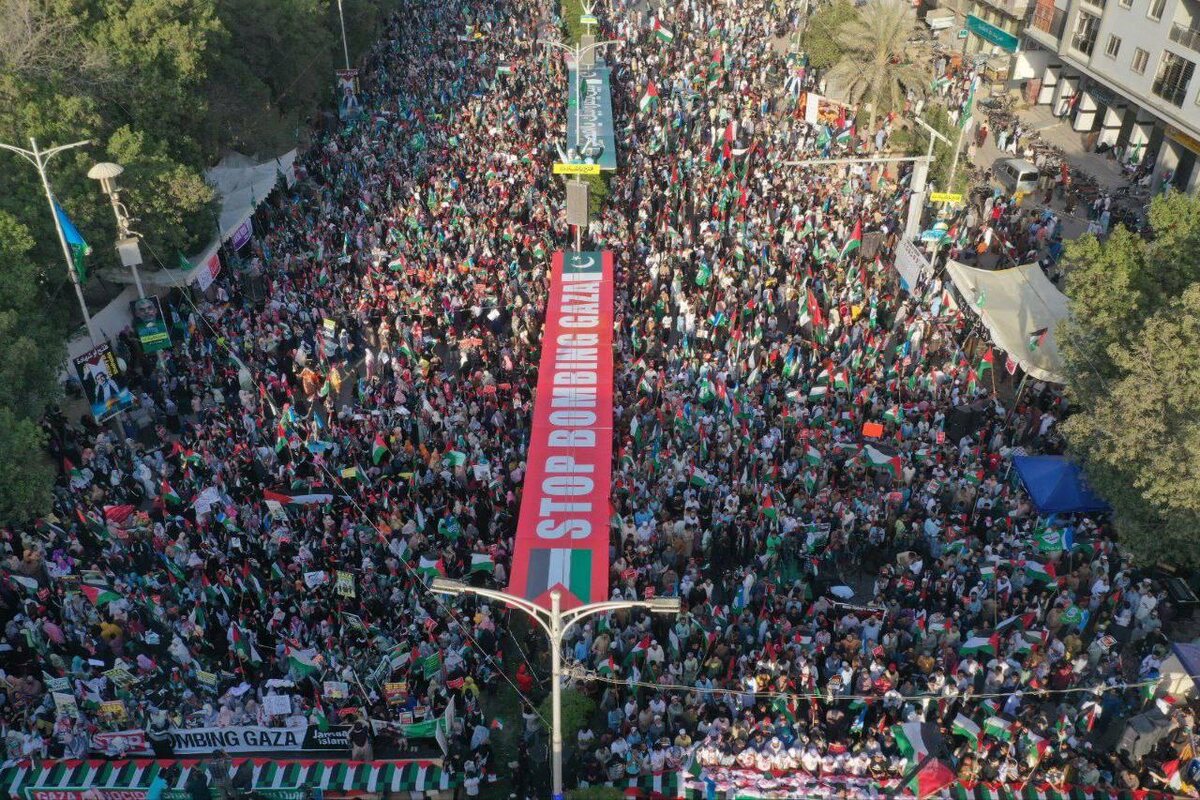 Tens of thousands rally in Karachi to support Palestinians, condemning over a year of what they call US-funded Israeli genocide in Gaza