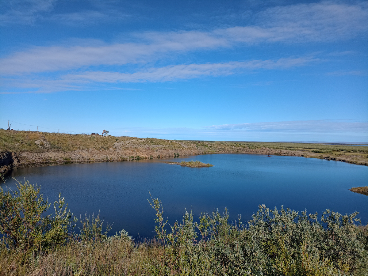 Этот объект на краю посёлка портовские пацаны называют "Камнедробилкой", это останки старого асфальтового завода. Своего рода неофициальная местная достопримечательность, в которую посвящены немногие. Под открытым небом на ладонях тундры в 60-е годы на его мощностях были построены взлетно-посадочная полоса (длиной 1700 метров) и первые каменные здания Чокурдаха. На фото карьер, где в 50-е годы начали добывать камень для строительства. При реконструкции полосы в 2016-17 годах, его ещё больше раскопали вширь и вглубь. Глубины теперь там приличные. В начале нулевых, когда выпадали тёплые деньки, а это здесь климатическая редкость, мы купались на этой каменоломне, узкая линия мелководья карьера относительно прогревалась, во всяком случае нам не было холодно и заплывы обходились без ЧП. А осенью любители коньков катались там по первому льду. Вдоль нижнего края карьера тянется грунтовая дорога, огибая его берег, она поднимается по косогору и приходит к руинам завода. Откуда здесь, в арктиче