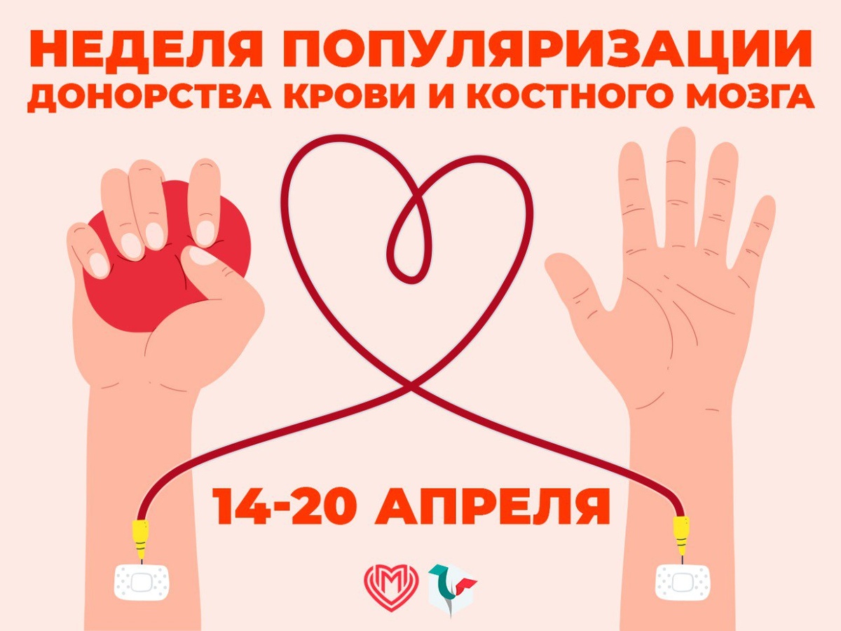 С 14 ПО 21 АПРЕЛЯ 2025 ГОДА — НЕДЕЛЯ ПОПУЛЯРИЗАЦИИ ДОНОРСТВА КРОВИ И КОСТНОГО МОЗГА.