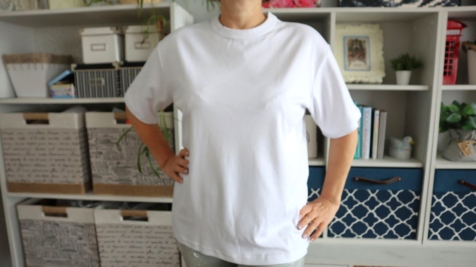 Иногда самые классные идеи приходят случайно. Недавно в магазине "Лента" увидела футболки по акции — всего за 150 рублей! Раньше они стоили 900, так что скидка отличная. Взяла себе одну, размер L, он как раз подходит на 52-й. Сейчас думаю — зря только одну купила! Футболка оказалась очень удобной, приятной к телу, и тут в голову пришла мысль: а почему бы не превратить её в блузку? Нарядную, женственную, но без всяких сложных выкроек и выкрутасов. Для переделки взяла прошву. Она отлично дополнит футболку и придаст ей тот самый "изюминковый” вид. Первым делом отпорола горловину, чтобы сделать ее более утонченной. Далее отрезала низ футболки — примерно 15 см от края. Не бойтесь, хуже точно не станет! На это место я и буду пришивать прошву. Края прошвы обработала трикотажем, который отрезала от футболки, для этого сложила полоску вдвое, приложила к ткани и пристрочила. Края обметала, с лицевой стороны прострочила отделочную строчку. По бокам получились закругленные разрезы — просто чтобы с