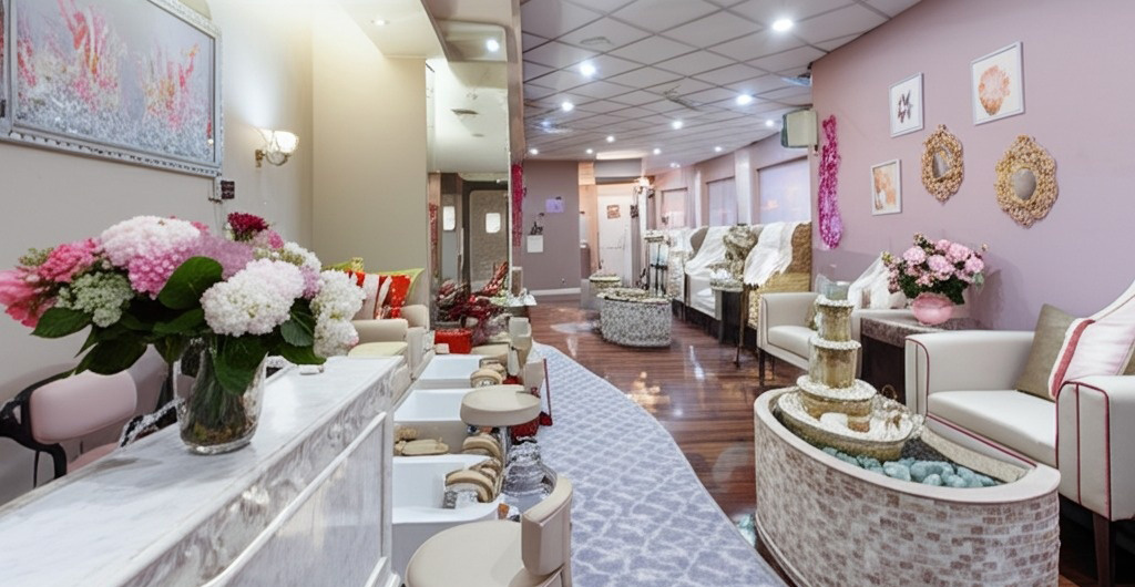 Зона маникюра и педикюра требует направленного света с высокой цветопередачей, чтобы мастер мог точно видеть оттенки лака и мелкие детали. Для этого идеально подходят точечные светильники с индексом цветопередачи (CRI) не ниже 90. Лучше всего размещать такие светильники над рабочими столами, чтобы свет попадал прямо на руки клиента и мастера. Также можно использовать светодиодные ленты по бокам стола для дополнительного освещения.
