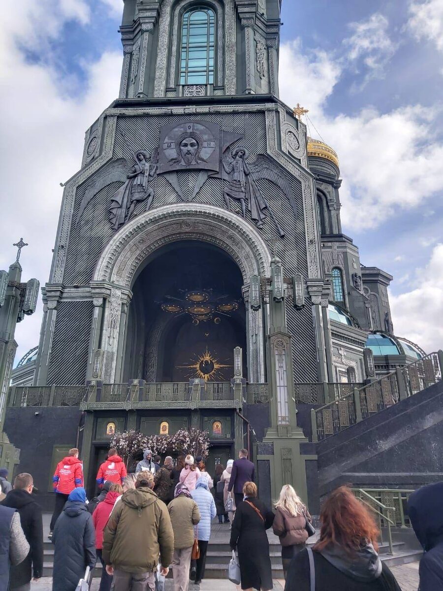 В пятницу мне довелось побывать в парке «Патриот» 🇷🇺, который находится в деревне Кубинка, Московской области. И вот что скажу — если думаешь, что тебя уже ничем не удивить в мире храмов и монументов, значит, ты ещё не был в Главном храме Вооружённых сил Российской Федерации ⛪️. Это не просто религиозное здание. Это — бронебойная смесь веры ✝️, памяти 🕊 и военной мощи 💪. Стоишь у входа и понимаешь: перед тобой храм, который буквально дышит историей 📜. Построен к 75-летию Победы 🎖. Высота — 75 метров. Каждая цифра имеет значение. Купола сделаны из переплавленного оружия ⚔️. Металл смерти стал символом памяти. Интерьеры — будто попал в живой музей: мозаики 🧩, витражи, барельефы с образами воинов всех эпох — от древних до современных. Над входом — Спас Нерукотворный и архангелы 🕊. Внутри — звёздное небо ✨, под которым чувствуешь себя песчинкой в масштабах истории. На фото — люди идут ко входу 🚶♂️🚶♀️. Кто-то — паломник, кто-то — турист, кто-то просто хочет увидеть нечто большее