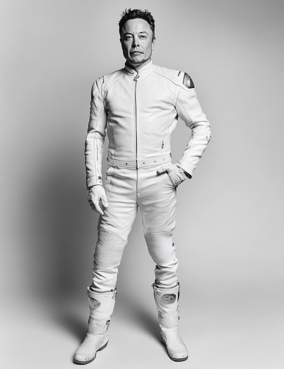 Создано на основе запроса: Black-and-white photograph of the front view of Elon Musk. He is wearing a White leather motorcycle suit. White background high-resolution photography. It features straight sleeves without armrests and a waistband as well as buttons that go down to below knee level. The pants have white borders on the sides and knees and also have two single back pocket areas. He has one hand in his pocket while standing on an isolated background. He wears white work boots, White background high-resolution photography. shot from eye level. --- Автоперевод: Черно-белая фотография переднего вида Элона Маск. Интересно выглядит? 🤔 https://dzen.ru/id/65c0c65c86e4f837c27b24d7 #ИИ #AI #нейросеть #midjourney #art