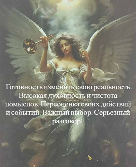 Приветствие ♾️ Путеводитель Подведением итогов. Переоценка своих недавних действий и событий. Неожиданная информация. Важное известие. Неожиданно появятся ответы на те вопросы, которые казались неразрешимыми. Готовность изменить свою реальность. Ключом именно к этой «небесной» двери является высокая духовность и чистота помыслов. Ситуация важного выбора, предопределяющего дальнейшую жизнь. Выбор материальных благ, удовлетворения физиологических желаний, или решение, подсказанное совестью и духом. Выбор профессии, принятие решения о смене работы или уход в другую сферу деятельности. Разговор «по душам». Серьезный разговор. Принятие ответственного решения. Воскрешение старого. Возврат к некоторым делам, ранее казавшимся завершёнными. Освобождение от старого. Переход на качественно новый уровень. Новый этап в жизни. Перемена к лучшему. Контакты между поколениями. Общение с родственниками. Совет Примите пороговое решение! Не забывайте родных!