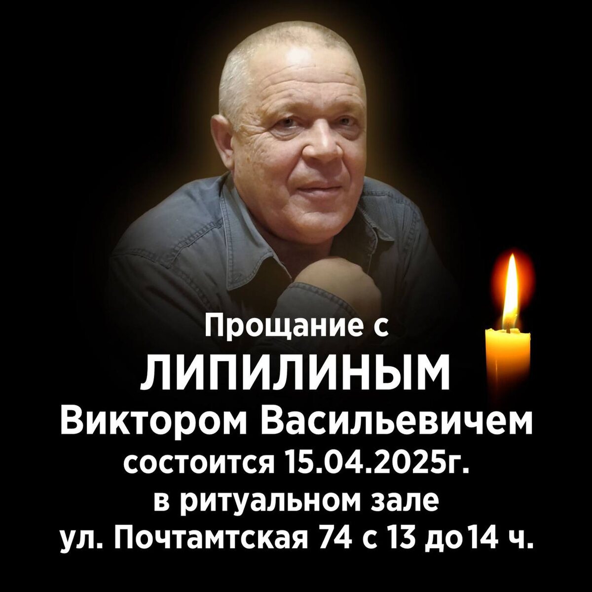 Ушел из жизни наш земляк, Липилин Виктор Васильевич. Простится с ним и проводить в последний путь можно 15 апрел с 13:00 до 14:00 по адресу улица Почтамтская 74