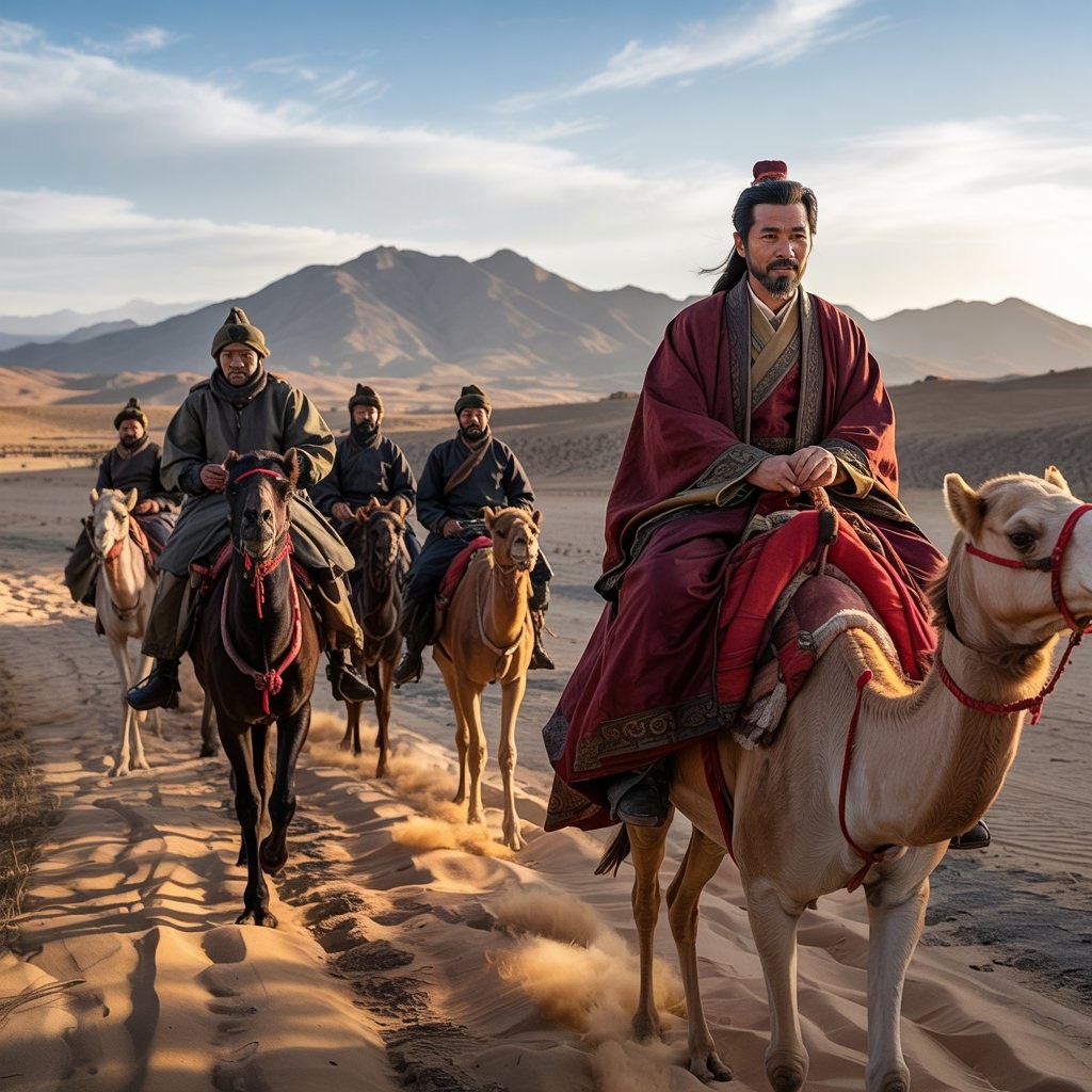 Снова в пути! Правитель Фарганы направил Чжан Цяня к своим союзникам Кангюям. С обещанием вернуться обратно! Кангюи помогли бы добраться китайцу до юэчжей. Воинов-хунну из сопровождения Чжан Цянь по совету правителя оставил. Юэчжи их бы казнили! Чжан Цяня сопровождал только хунн Тан, да воины, выделенные царём Фарганы и погонщики верблюдов, везущие дары для царя Кангюя. От них китаец и хунн пытались узнать побольше о "небесных конях", которых они видели на пастбище. Воины отмалчивались! Даже, выделяемая им дополнительная чашка вина не развязывала им языка. Зато свободно рассказывали о стране Кангюев, которую они собирались посетить. Это была богатая и обширная страна на реке Канха. Правящий дом там составляли родственники царей юэчжей. Когда-то юэчжи убегали от хунну и завоевали страну Канха. Местный народ покорился юэчжам и признал их власть. Но здесь было мало места для кочевников, привыкших к степному разнотравью. Большая часть юэчжей ушла в Фараруд (современная Средняя Азия), отку