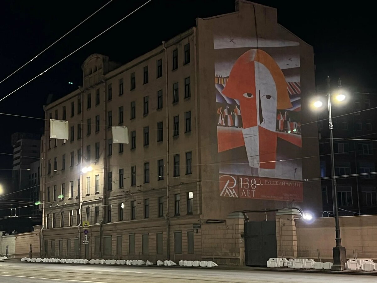 В этом году Государственный Русский музей отмечает 130-летие со дня основания. В честь большого юбилея на зданиях в разных точках Северной столицы вечером появляются проекции известных картин русских мастеров. Среди них произведения Карла Брюллова, Александра Дейнеки, Казимира Малевича, Василия Кандинского, Бориса Кустодиева и других живописцев.
